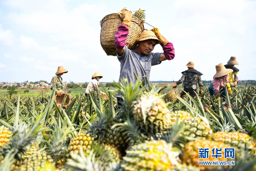资料图:2020年3月,广东徐闻县曲界镇韩宅村,村民收获菠萝。新华社记者 邓华 摄