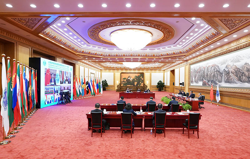 9月17日,国家主席习近平在北京以视频方式出席上海合作组织成员国元首理事会第二十一次会议并发表重要讲话。新华社记者 申宏 摄